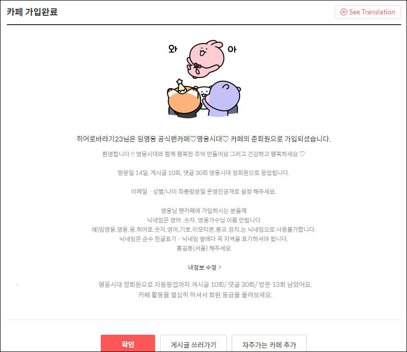 임영웅 공식 팬카페 가입하기