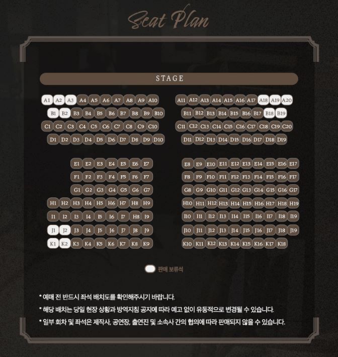 뮤지컬 데미안의 공연이 열리는 드림아트센터 3관의 좌석 정보와 좌석 가격은 다음과 같다.