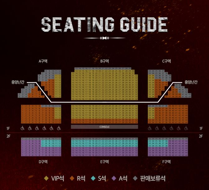 - 객석 1~4열은 무대와 가까운 위치로 생동감 있는 무대를 즐기실 수 있지만 단차가 없는 평지로 시야 방해가 있을 수 있습니다.