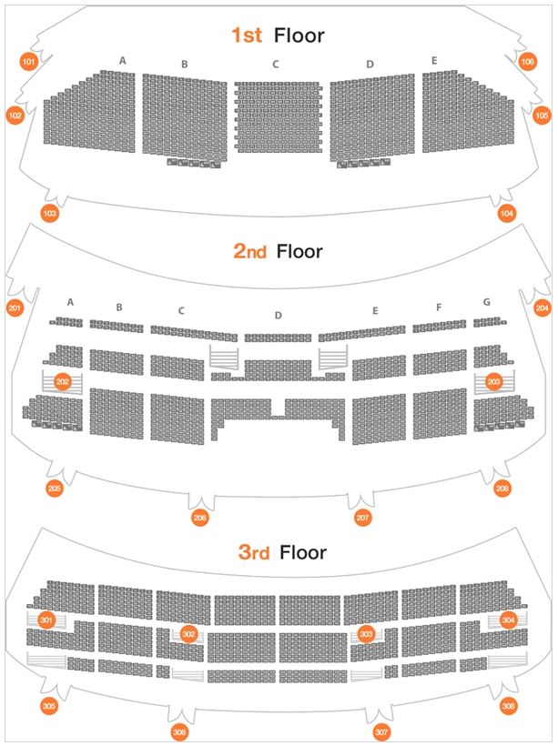 1층 객석의 경우 B, C, D를 추천하며 양 옆의 A, E 좌석은 시야제한이 발생할 수 있다. 또한 단차가 크지 않아 앞 좌석 관객의 키도 매우 중요하다.