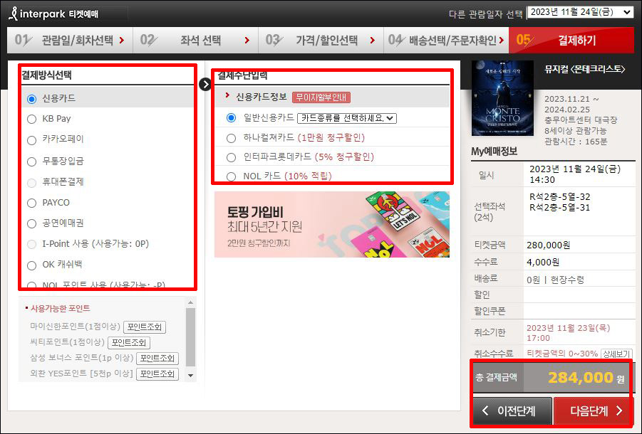 몬테크리스토 뮤지컬 예매방법
