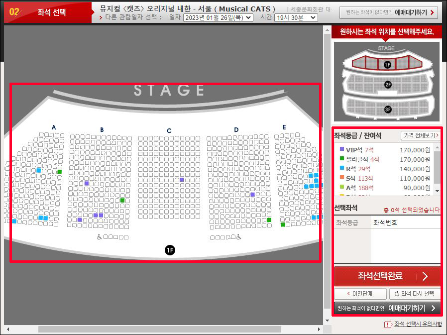 ① <캣츠> 예매를 통해 인터파크 예매창으로 이동합니다.