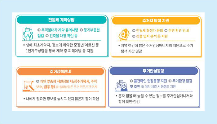 - 주거복지, 주택보수, 금융 등 개인 맞춤형 상담 지원
