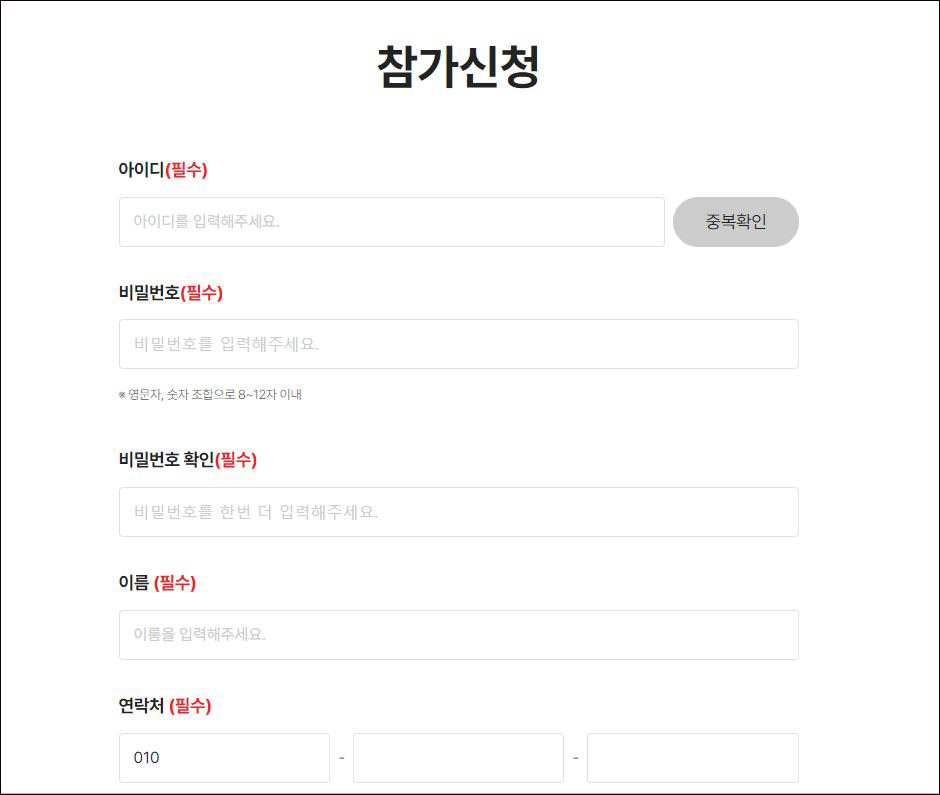 ③ 다음 페이지에서 개인정보 기입, 연락처, 성별, 생년월일, 거주지, 주된 직업군, 관심 기관 등을 체크하시고 참가신청을 누르시면 참가신청이 완료된다.