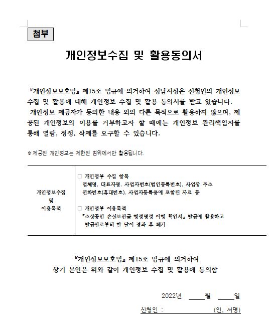 1. 소상공인 손실보전 행정명령 발급신청서(필수) - 자필 서명 후 스캔 등록