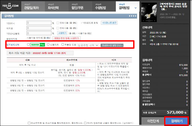 ※ 환불은 예매 후 7일 이내에는 전액 환불이 가능하지만 예매 수수료 정보는 아래를 참고하시길 바랍니다.