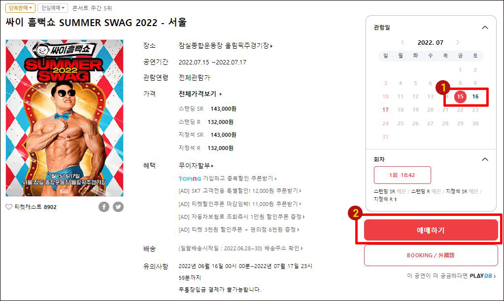 ② 예매하기를 클릭