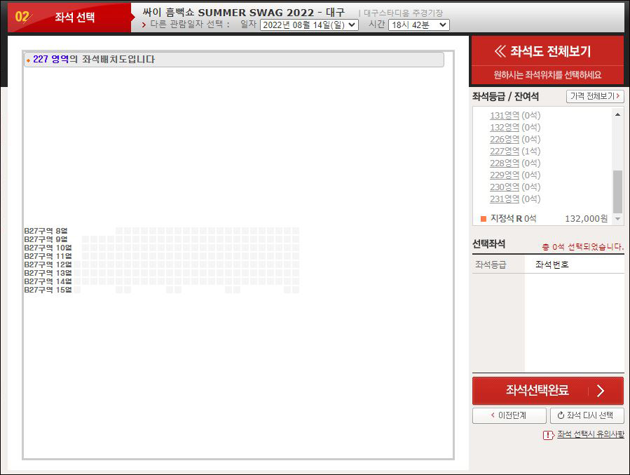 ⑤ 원하시는 좌석을 선택하고 결제를 해주시면 완료됩니다.