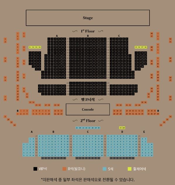 유니버설아트센터는 총 1082석으로 1층 572석, 발코니층 164석, 2층 346석, 휠체어석 10석으로 구성되어 있습니다.