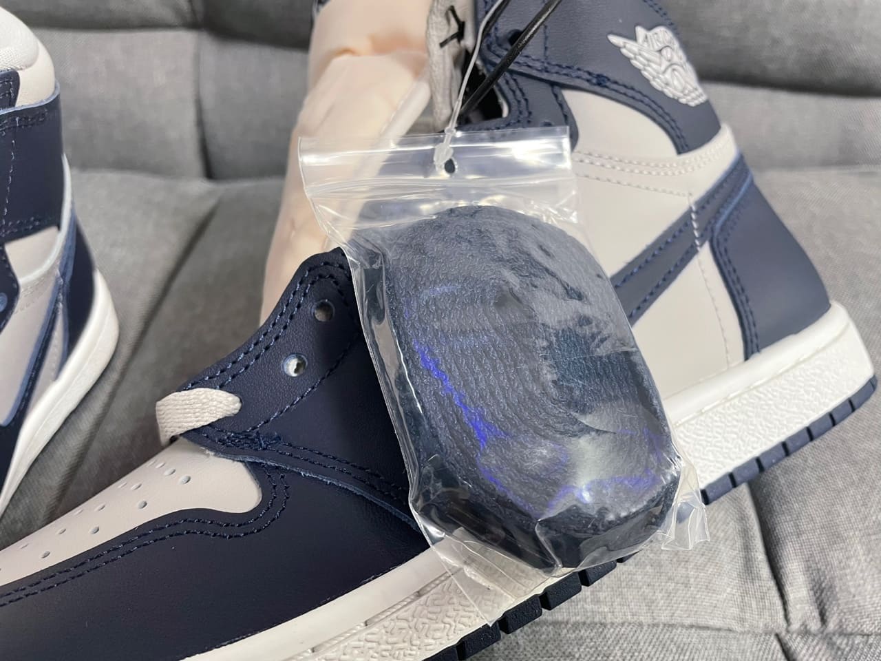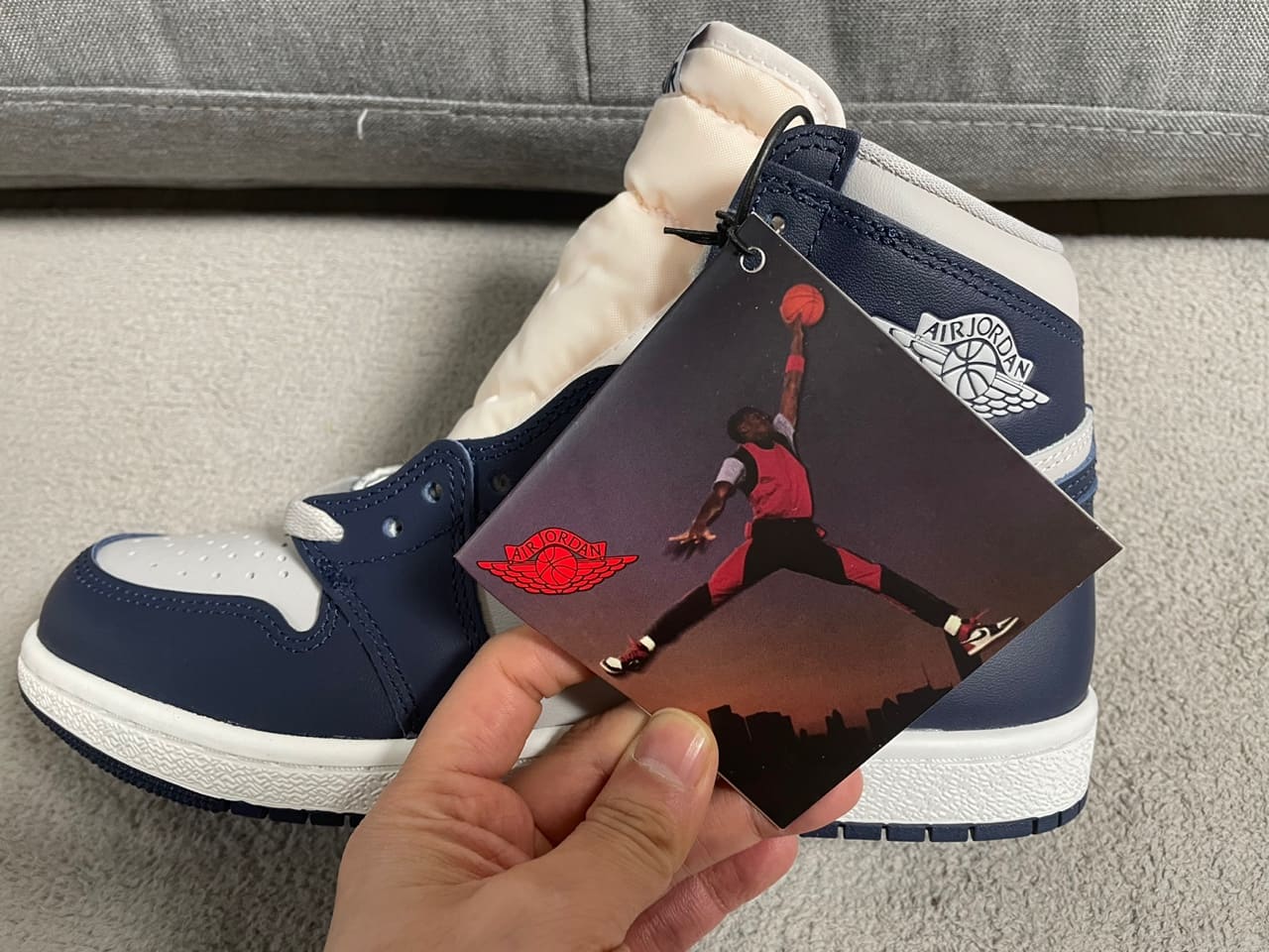 또한, 어느 착장에도 잘 어울리는 네이비와 그레이 컬러로 이루어져 있어, 실착이든 소장이든 충분히 매력 있는 조던 1 모델이 아닌가 싶습니다!