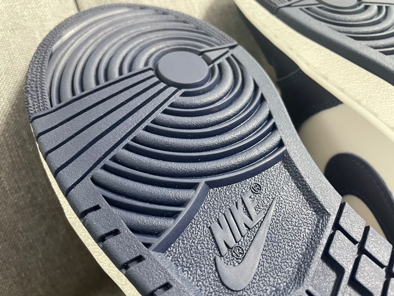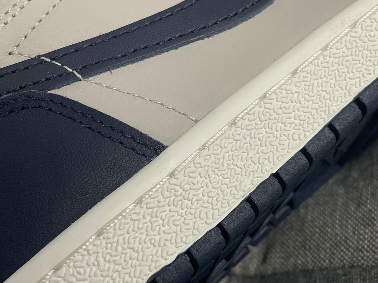 그리고 미드솔의 패턴을 보시면 전형적인 조던 1의 미드솔 패턴이 다르다는 것을 아실 수 있습니다.