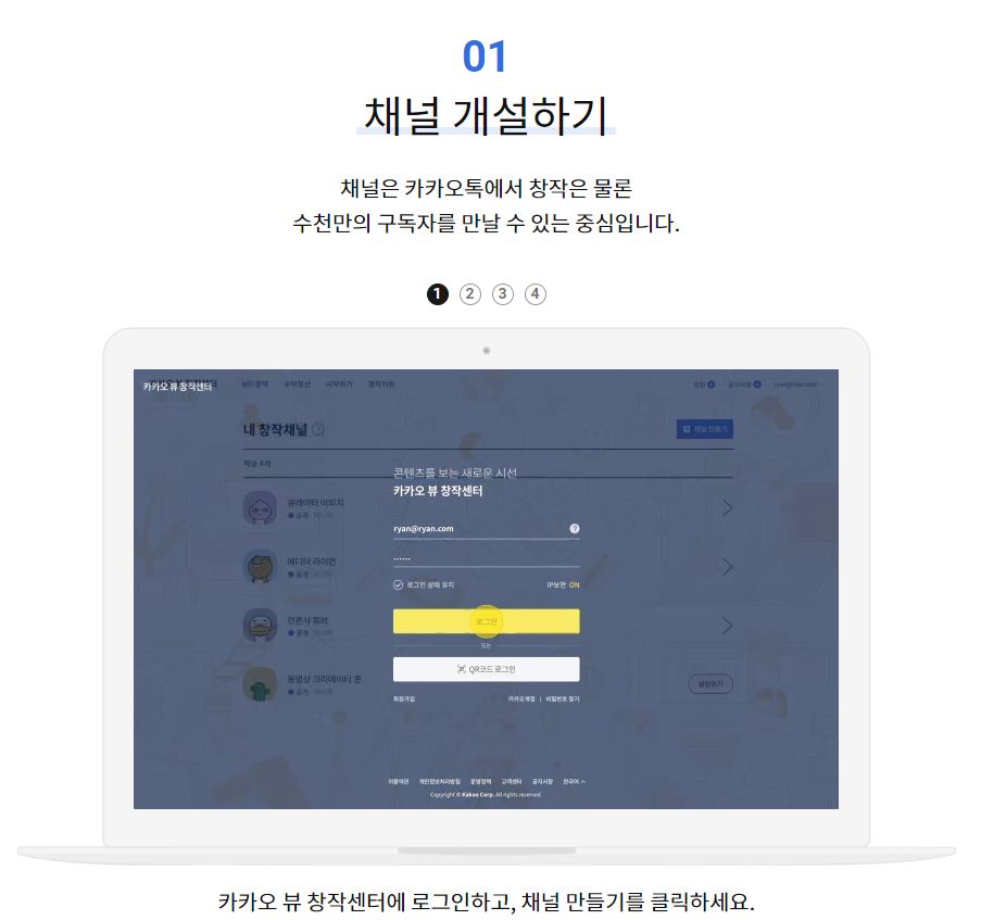 내 채널을 만들어 스스로 크리에이터가 될 수 있는 카카오뷰 채널을 만들어 봅시다. 아래의 링크를 통해 카카오창작센터로 이동해 주세요