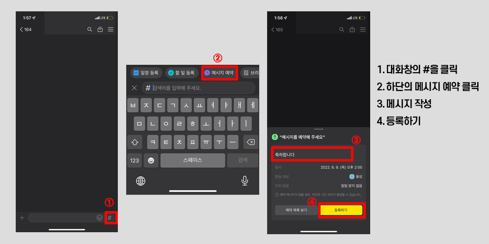 예약 전송 기능으로 다양한 미팅, 행사, 이벤트들을 미리 준비하고 메시지를 보낼 수 있는데요. 가까운 지인들에게 꼭 예약 전송하기를 사용하여 마음을 전해 보세요