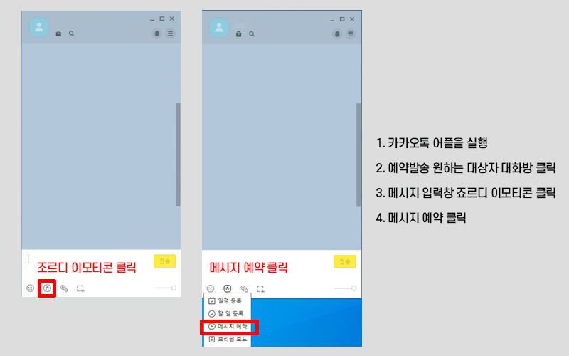 PC 카카오톡 예약 전송은 아래와 같이 설명해 드립니다.
