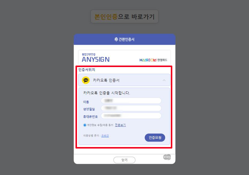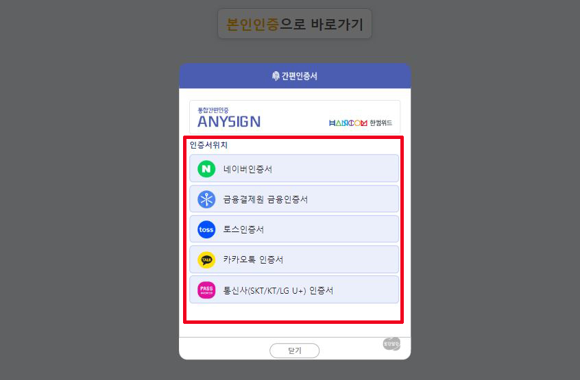 ※ 간편 인증 / 공동 인증서 / 휴대폰 인증 중 편리하신 방법을 선택하시길 바랍니다.