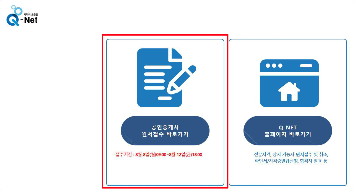큐넷 공인 중개사 홈페이지 신청