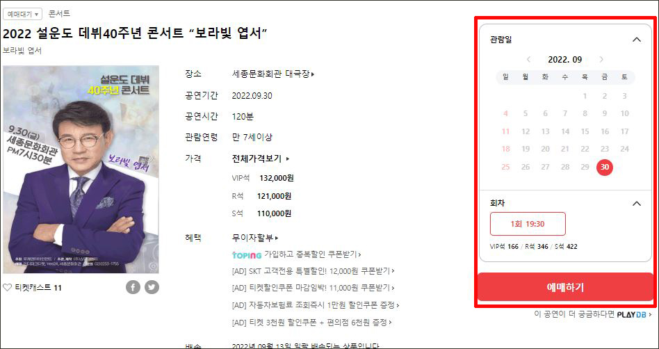 ※ 설운도 콘서트 예매는 위를 통해 바로 예매가 가능합니다. 좌석이 빠르게 매진 중이니 서두르시길 바랍니다.
