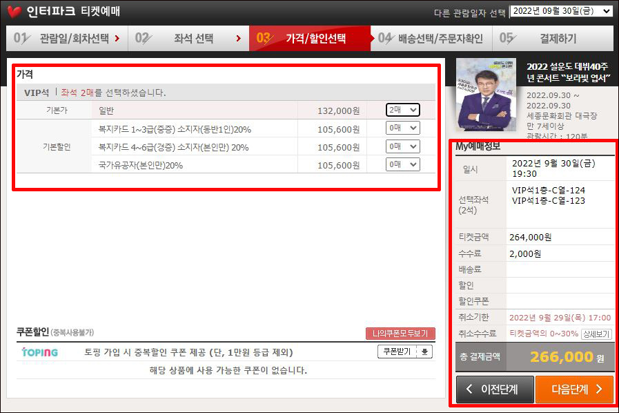 ④ 가격과 할인정보 확인 → 다음 단계
