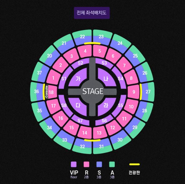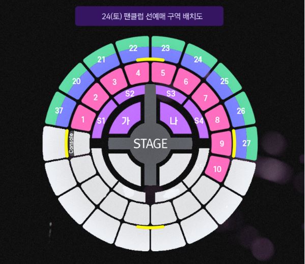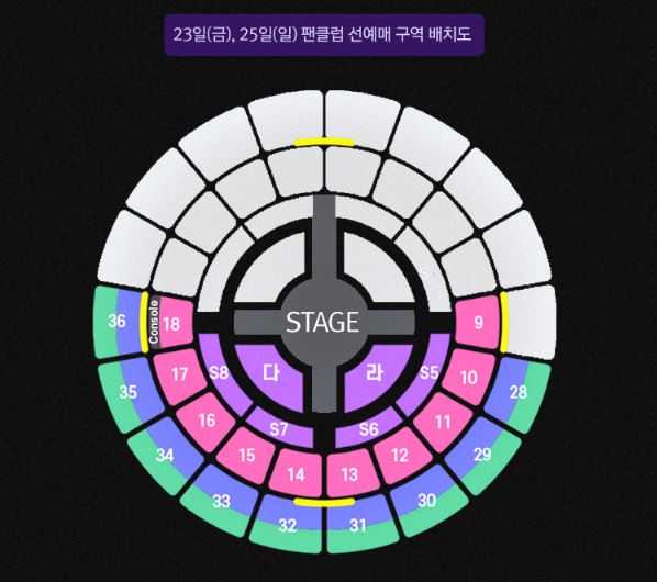 23(금), 24(토), 25(일) 팬클럽 선예매 구역 배치도는 위의 이미지를 참고하시길 바랍니다.