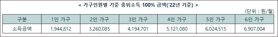 소득인정액을 기준으로 중위소득 100% 이하만 신청 가능