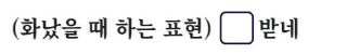 - 16번의 O 받네는 <킹>이 정답으로 화가 났을 때 표현하는 말입니다. "킹 받네"